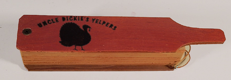 Uncle Dickie's Box Calls ![]() My box calls are all hand-made sawn and glued of the finest materials. I currently make three standard calls of my own design. The difference in the calls' materials affects the quality of the tone of the call. My standard design is Walnut Bottom, Mahogany Sides, Walnut Ends, and assorted woods for the Lids. I have found the combination of Purple-Heart Lids with Mahogany Box to have the finest voice with a slightly higher, raspier pitch that gobblers go for. My other lids are Mahogany, and Walnut. I like to say that the Purple Heart is a Cadillac,because of the material and excellent tone it makes. I consider my other calls more like a Chevy - excellent calls and great sounding, but with less exotic wood. I do have other woods available and can make a custom call upon request. Each of my boxes are individually handmade, and hand-tuned in my shop - I do not have a "production line". So if you are looking for an excellent hunting call at a great price - look no further. You have found it! Please feel free to call me regarding my calls and or turkey hunting in general. I love to meet people meet and help new hunters anytime. NOW! Buy Online Through Ebay My calls are now listed on Ebay at my normal prices. You may now purchase and have a call shipped to you ASAP. Money Back Guarantee If a call has an "ebay link", you may click on the link to view or purchase online. For more information, you may call me at 973-271-0183 or email my sales dept: sales@uncledickiesyelpers.com |